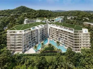 В комплексе: современный эко-комплекс в районе пляжа Банг Тао на Пхукете, построенный с фокусом на устойчивом развитии и экологичном образе жизни. Комплекс оснащен солнечными панелями, которые питают лаунж-зону на крыше и зарядные станции для электромобилей. На крыше расположен 25-метровый бассейн с потрясающими панорамными видами, а также кабаны, выполненные с учетом экологических стандартов. На седьмом этаже находится оборудованный тренажерный зал, а также спа-зона с сауной, парной и ледяной ванной. Для удобства жителей комплекс также включает ресторан с блюдами из местных продуктов, коворкинг и детский клуб.