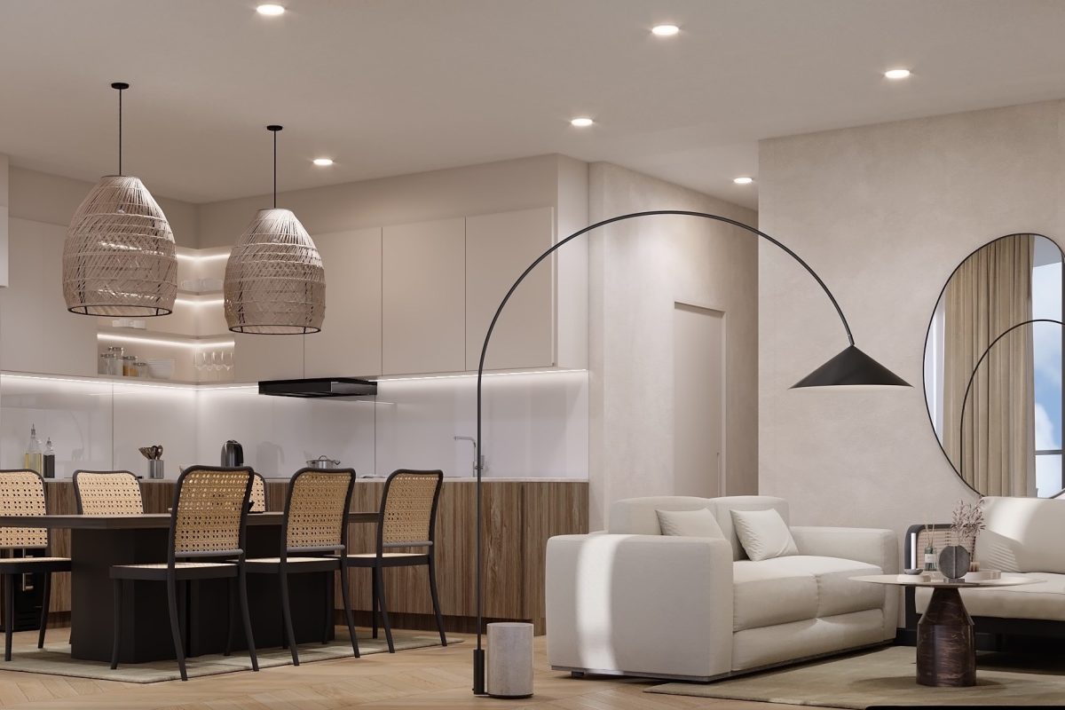 В апартаментах: предлагаются девять различных типов квартир площадью от 26 до 95 кв.м., что позволяет выбрать оптимальный вариант для разных потребностей. Интерьеры выполнены в современном стиле, с акцентом на экологичные материалы и продуманное зонирование. Квартиры включают качественные кухни и стильные гардеробные, а также варианты меблировки на выбор, которые помогают жильцам создать уютное и функциональное пространство.