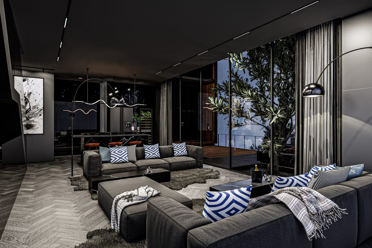 На вилле: каждая вилла воплощает в себе стиль современного минимализма с элементами элегантной простоты. Дизайн основан на гармоничном сочетании светлых и темных материалов, которые подчеркивают современный облик. Интерьеры включают просторные гостиные с открытой планировкой, соединяющие зоны для отдыха и общения. Особое внимание уделено созданию приватных пространств и высокому уровню комфорта. Каждая вилла имеет бассейн, террасы и отдельные студии.