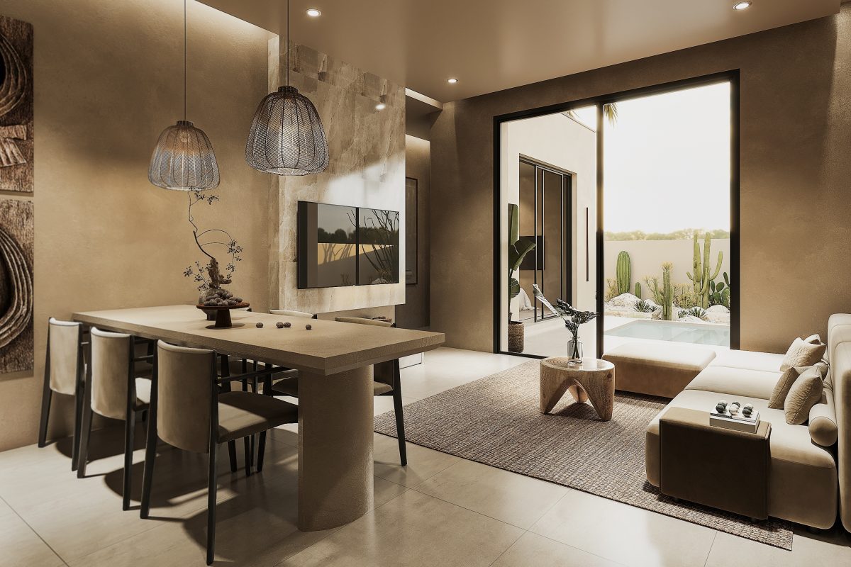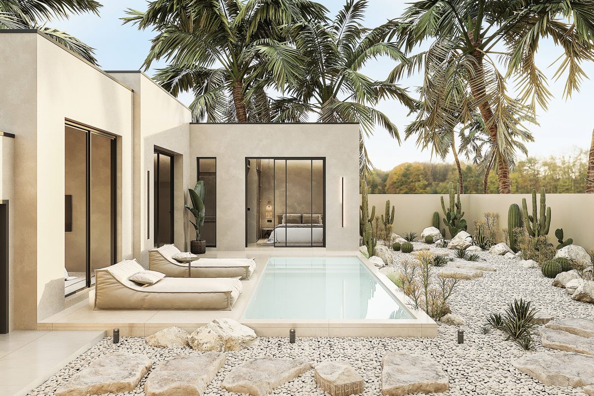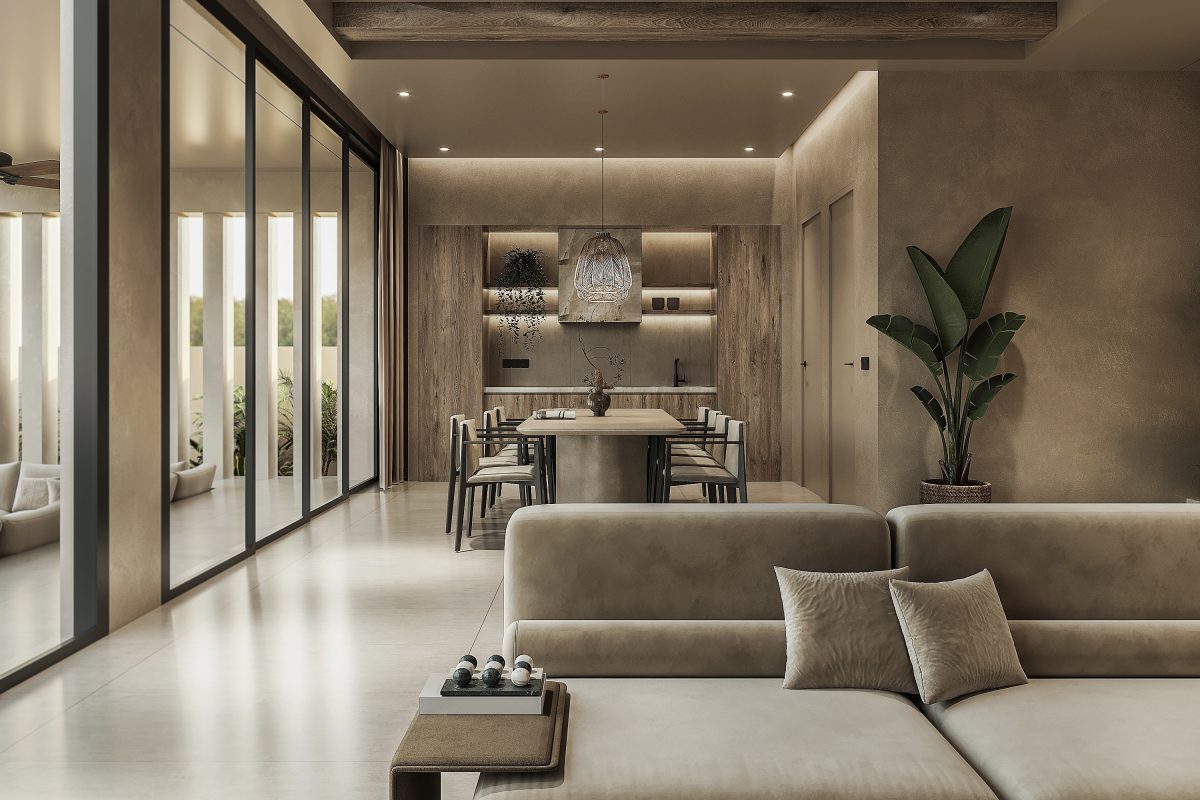 На вилле: виллы представлены в нескольких планировках с 1 и 2-мя этажами, просторной гостиной зоной, собственным бассейном, террасой, мастер-спальней с отдельной ванной комнатой, техническим помещением и парковкой. В большинстве планировок предусмотрены просторные кухни, открытые переходы и приватные внутренние дворики. Архитектура вдохновлена современным тропическим стилем: лаконичные формы, открытые пространства и максимальное взаимодействие с природой. Интерьеры выполнены в нейтральной, современной эстетике с возможностью индивидуальной меблировки и дооснащения.