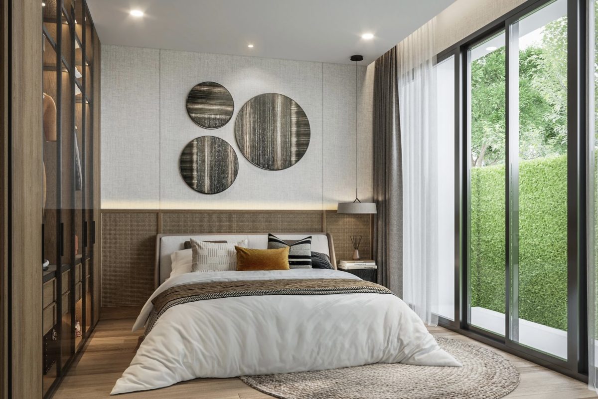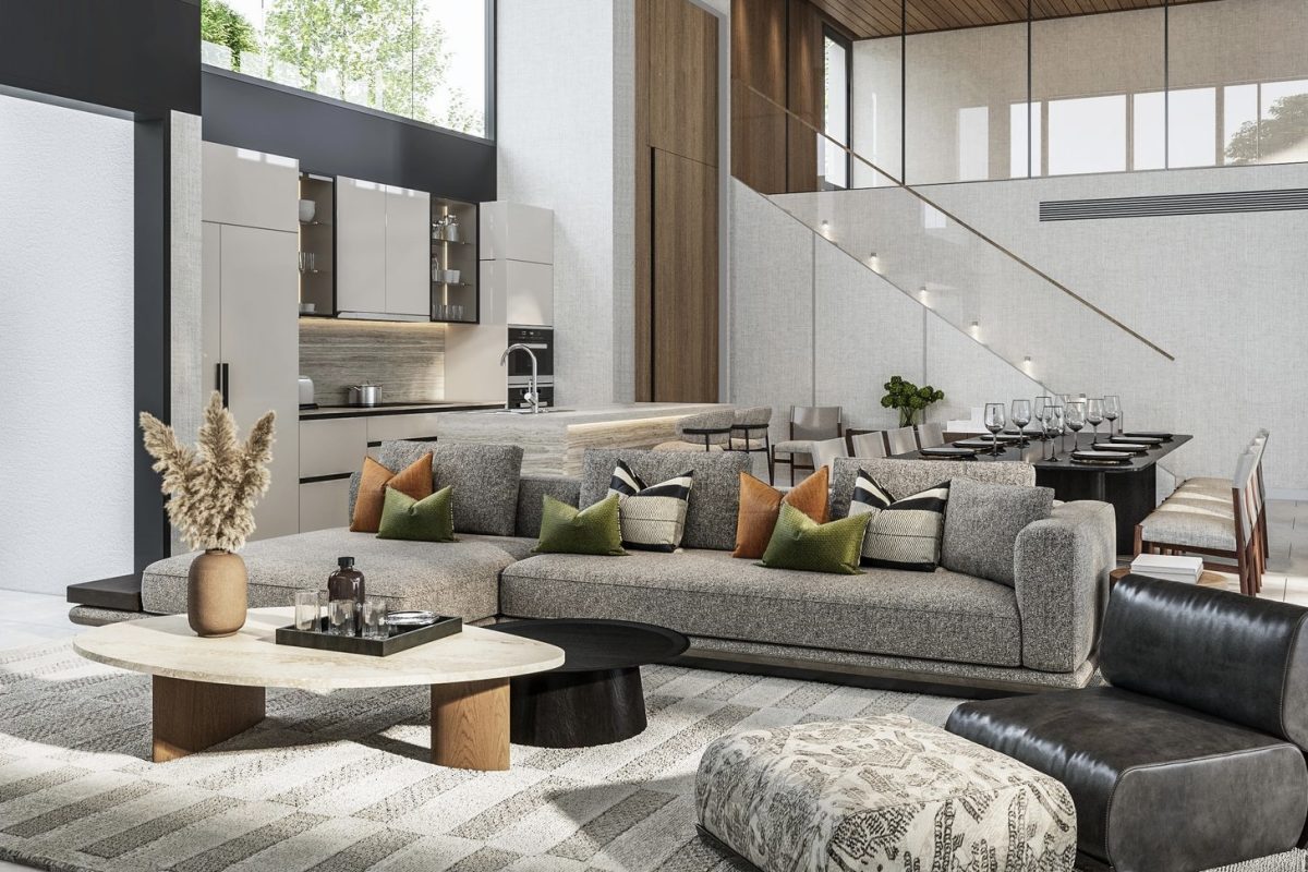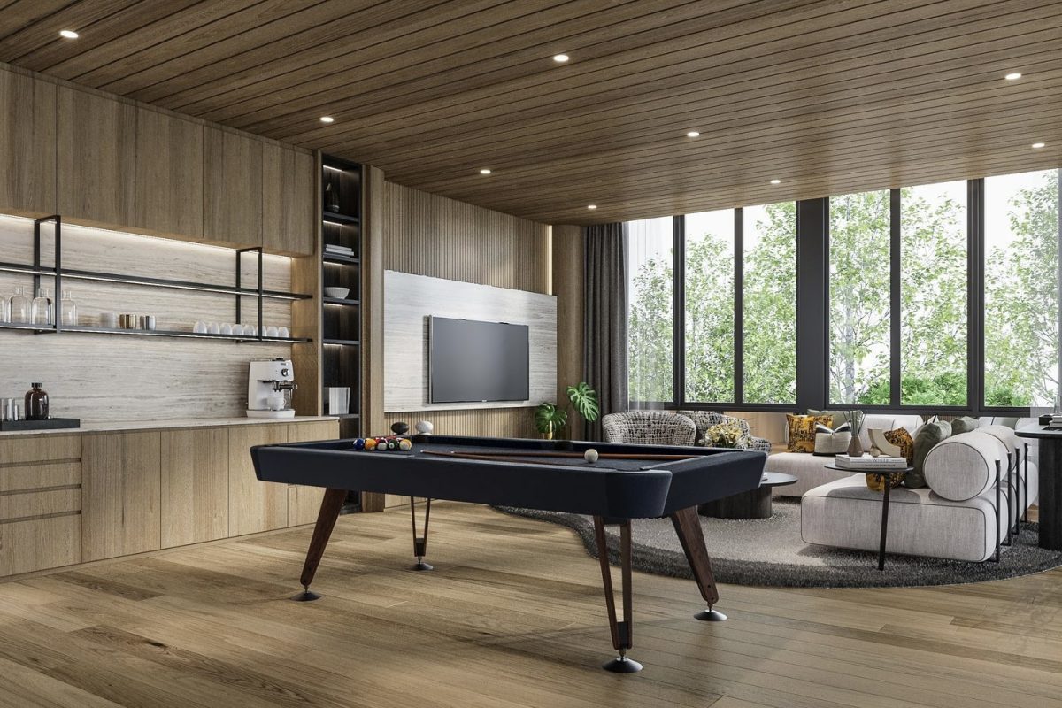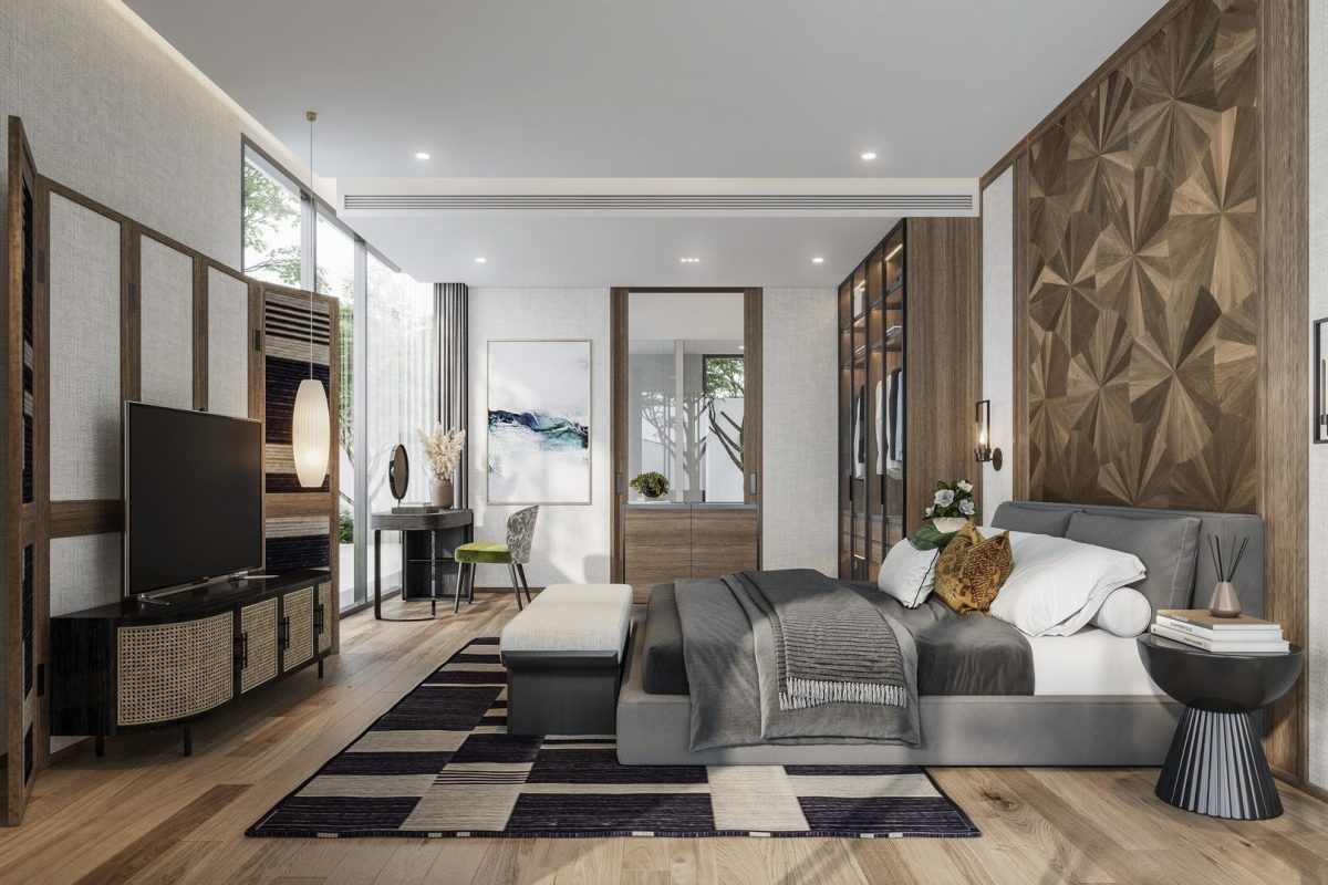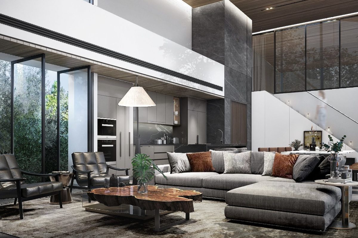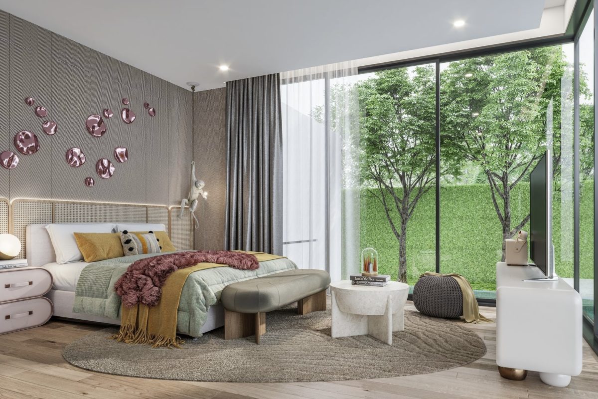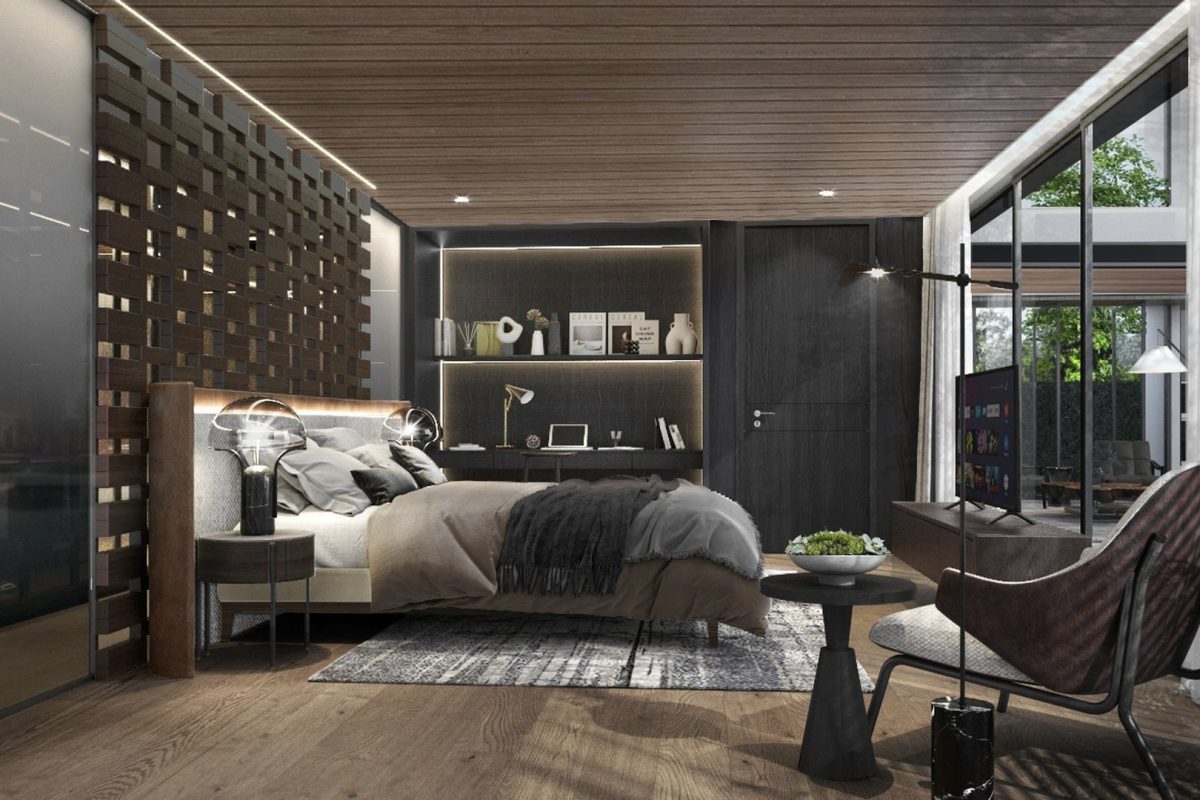 На вилле: каждая вилла оснащена частным бассейном с террасой, просторной гостиной с потолками высотой до 6 метров, кухней открытой планировки и спальнями с прямым выходом к бассейну. Проект предлагает два варианта интерьерного оформления — в светлой и тёмной цветовой гамме. Планировка включает 3 спальни и одну многофункциональную комнату, которую можно адаптировать под четвёртую спальню, детскую, кабинет, фитнес-зал или зону отдыха. В отделке использованы премиальные материалы: натуральный камень, высококачественная древесина, алюминиевые профили европейского стандарта и фурнитура высокого класса.