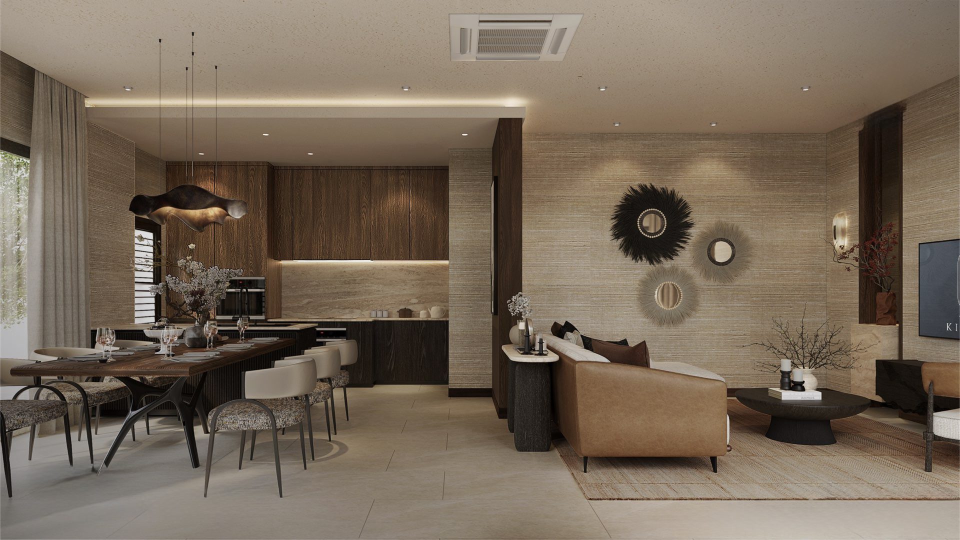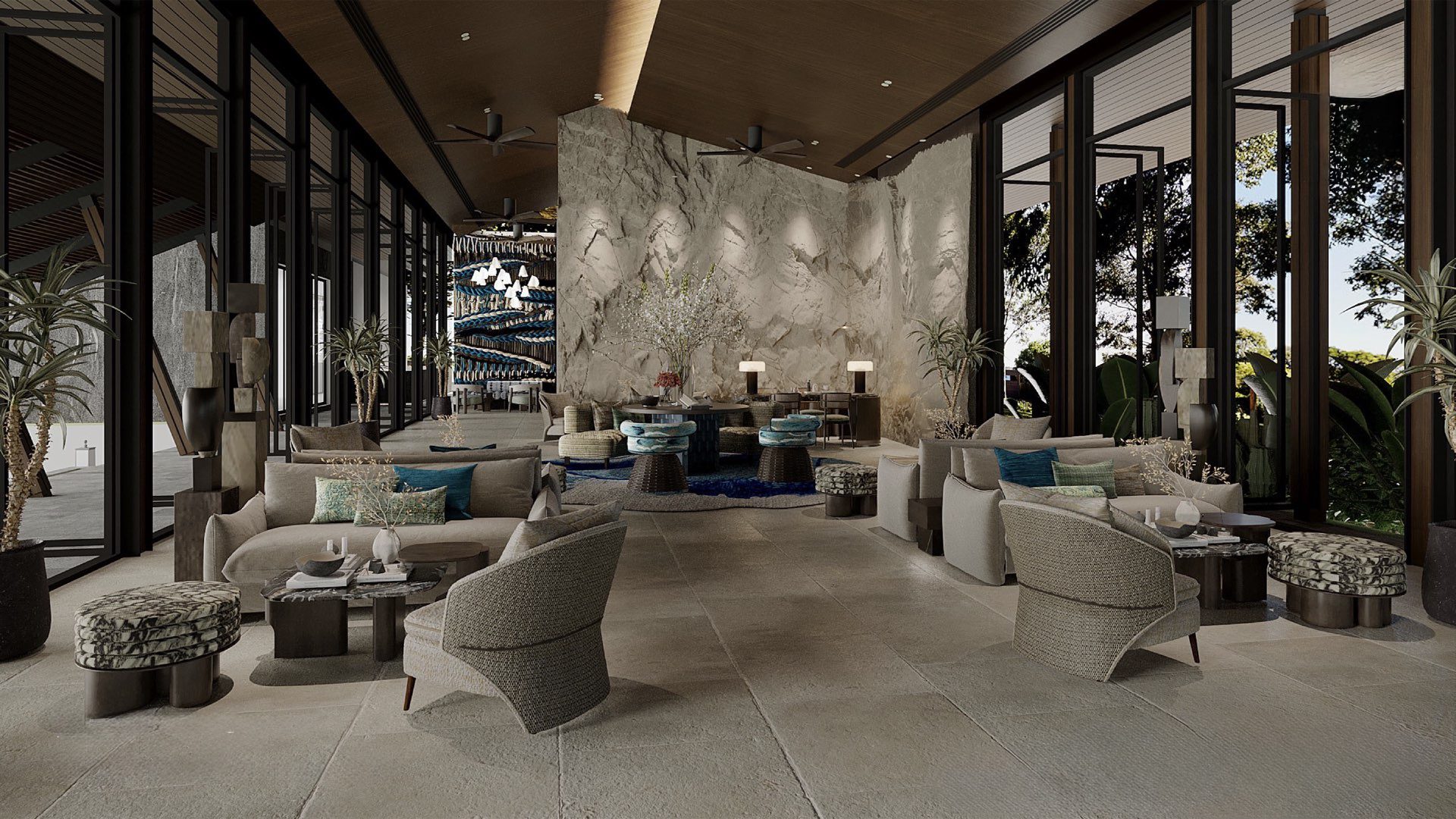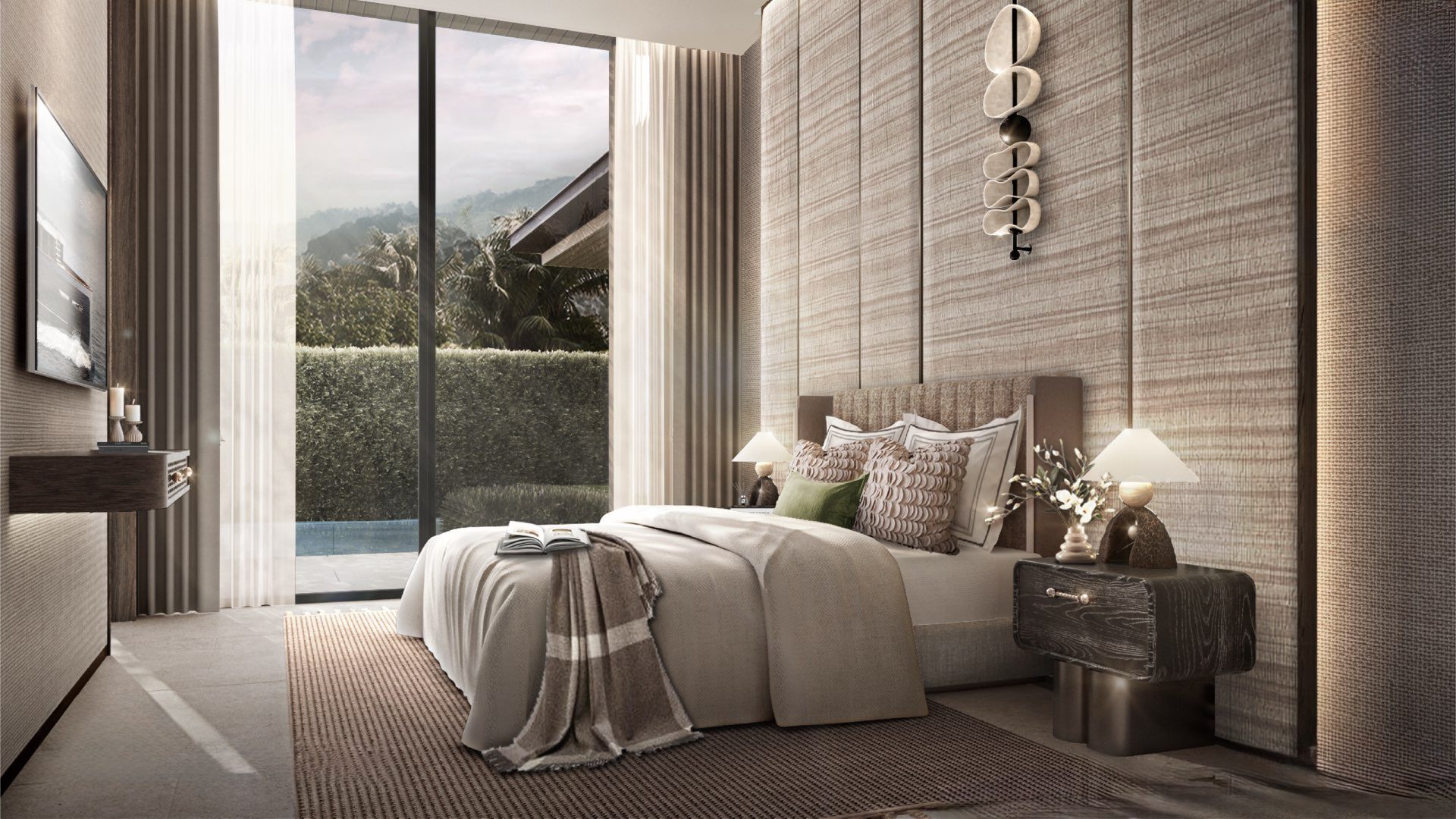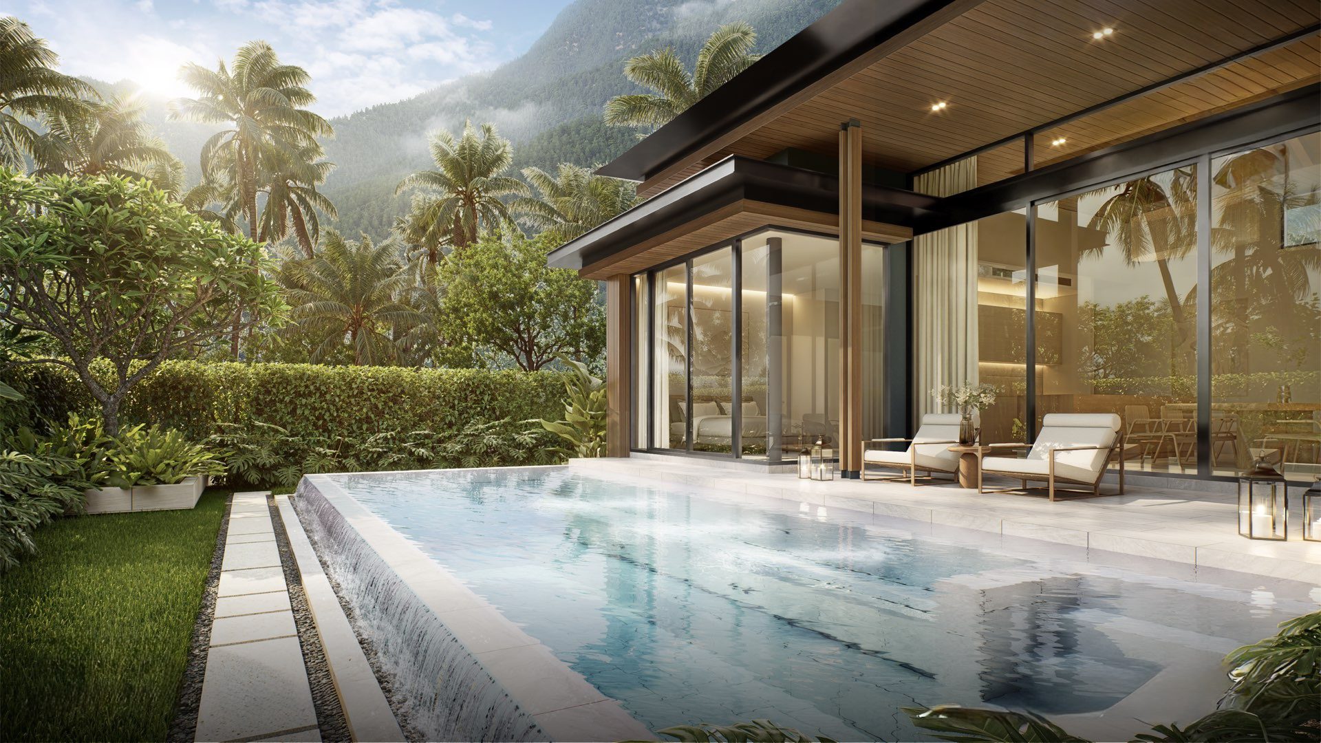 На вилле: просторные интерьеры с высокими потолками и панорамным остеклением создают ощущение открытого пространства и естественного освещения. Планировки продуманы для максимального удобства: гостиная объединена с кухней и обеденной зоной, из которой есть прямой выход к бассейну и террасе. На каждой вилле предусмотрена парковка, прачечная, кладовые помещения и отдельные зоны отдыха.