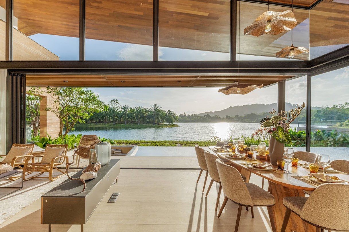 На вилле: панорамные окна с видом на озеро, инфинити бассейн интрегрированный в ланшафт, просторная терраса, в отделке виллы используются только экологически чистые материалы.