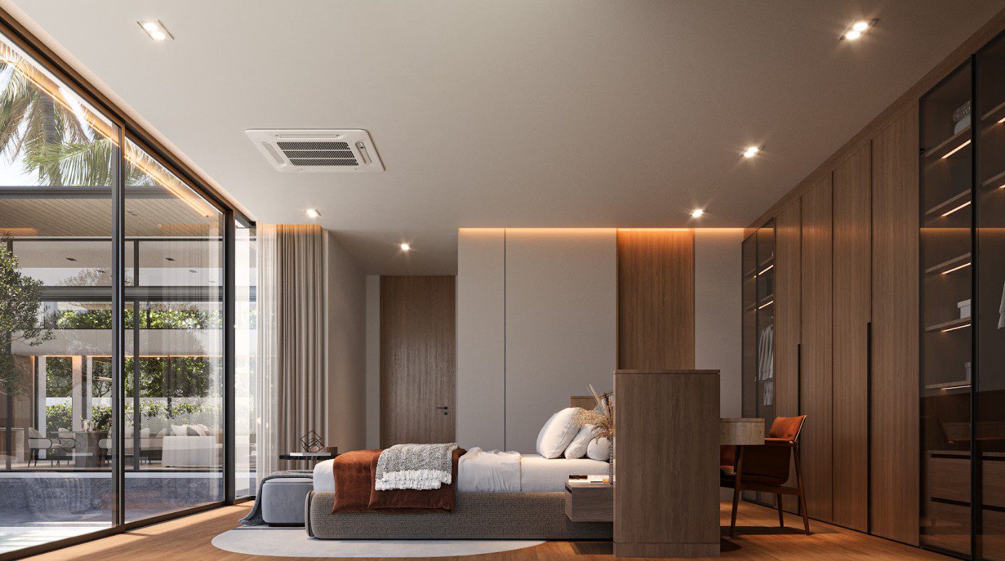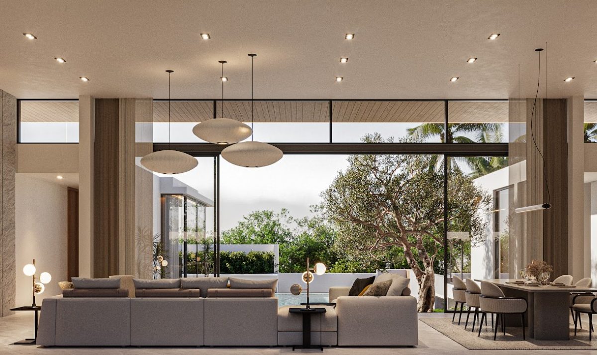 На вилле: виллы с 3мя, 4мя и 5ю спальнями, высокие потолки, панорамные окна, система умный дом.