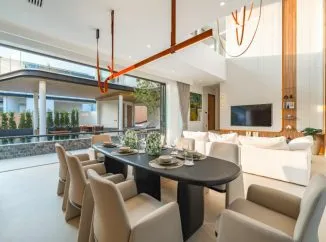 На вилле: отличаются современным дизайном и высококлассными удобствами. Высокие потолки и множество окон обеспечивают естественное освещение и связь с природой. Просторные дома площадью от 397 до 485 кв.м. предлагают достаточно места для отдыха. Виллы оснащены системой «Умный дом» для удобства управления. Энергоэффективные технологии, такие как солнечные панели, снижают эксплуатационные расходы. Гараж на две машины с зарядным устройством для электромобилей и автоматическими воротами. Бассейны оборудованы круглосуточной системой видеонаблюдения для безопасности.