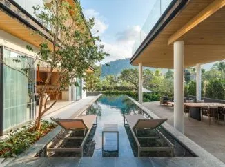 В комплексе: комплекс из 9 роскошных вилл с частным бассейном, расположенных в престижном районе Бангтао на северо-западном побережье Пхукета. Занимает площадь в 5 409,14 кв.м., с виллами на земельных участках от 509,91 до 779,08 кв.м. На территории комплекса предусмотрены ухоженные сады, дорожки для прогулок и общие зоны отдыха. Виллы окружены зеленью, что обеспечивает уединение и спокойствие. Весь комплекс охраняется круглосуточно, обеспечивая безопасность и комфорт для жителей.