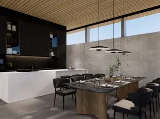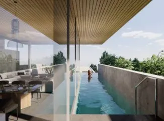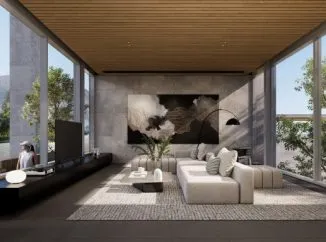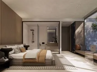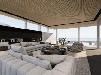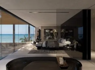 Интерьер в природных тонах в современном стиле стиле, подчеркивающем умиротворенность окружающего пейзажа. Каждая из вилл имеет панорамные виды в две стороны со второго и третьего этажа, что создает полное ощущение единения с природой. Первый этаж включает в себя просторную гостиную, развлекательную зону и многофункциональную комнату которая может быть обустроена в соответствии с индивидуальными потребностями. На втором этаже три роскошные спальни с панорамными окнами и гардеробной. На третьем этаже кухня, просторная гостиная и обеденная зона с панорамными окнами. Верхний этаж с открытой террасой и бассейном с видом на море, зоной для обедов на свежем воздухе и отдыха.