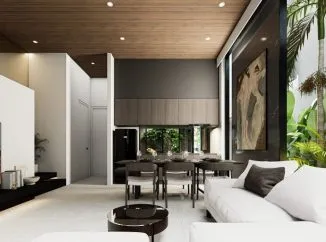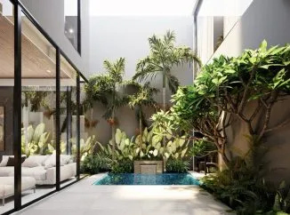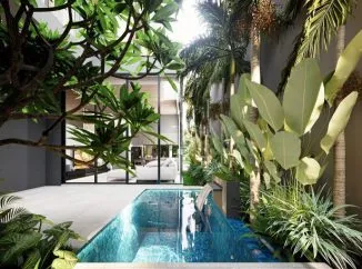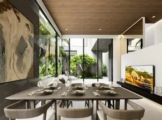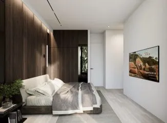 В апартаментах: интерьеры апартаментов выдержаны в современном стиле с использованием светлых тонов, создавая атмосферу уюта и комфорта. Каждая из 7 доступных планировок (1-, 2- и 3-спальные варианты, дуплексы с бассейнами и пентхаусы) предлагает функциональность, элегантность и внимание к деталям.