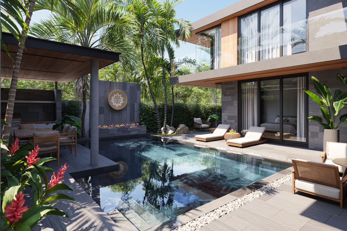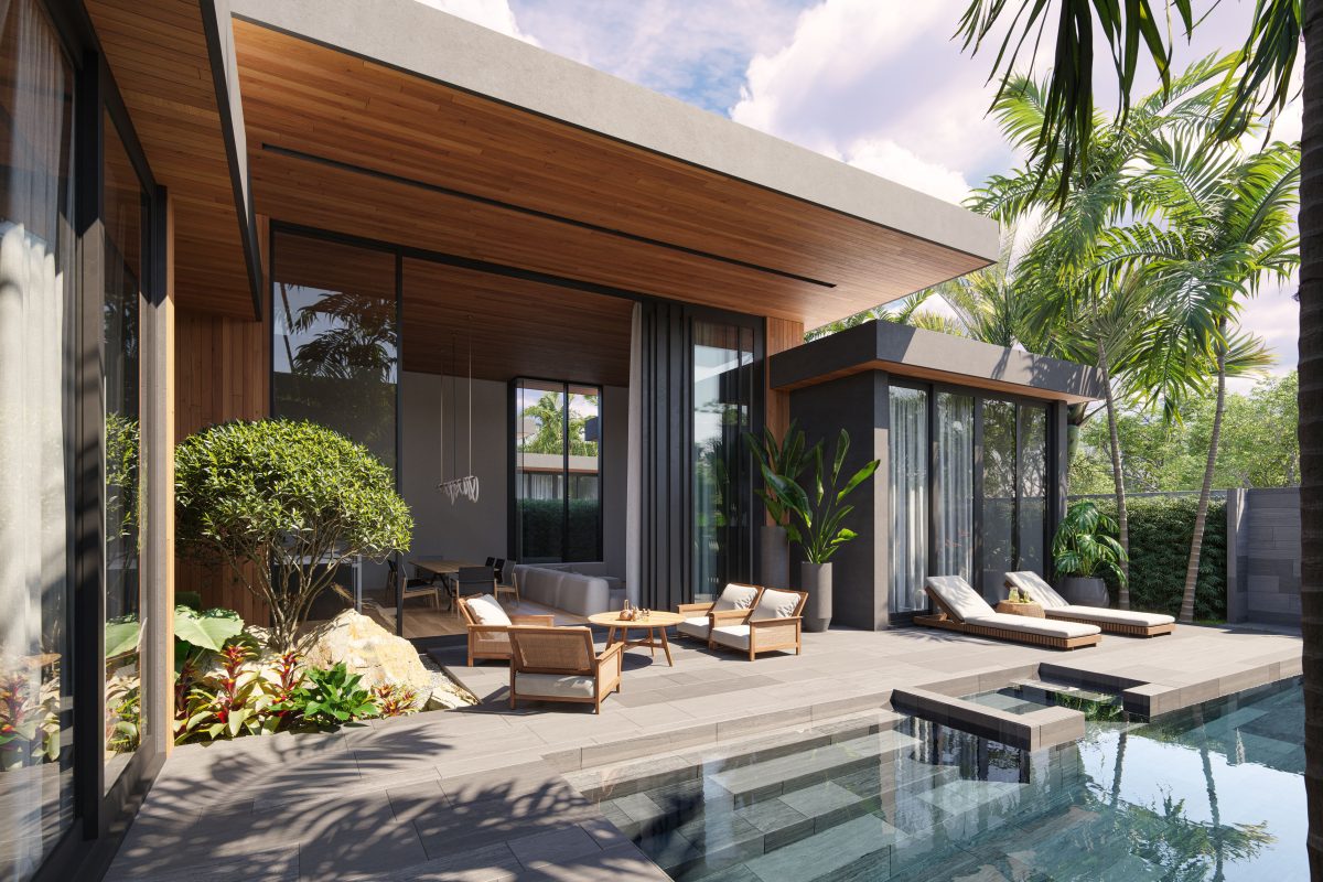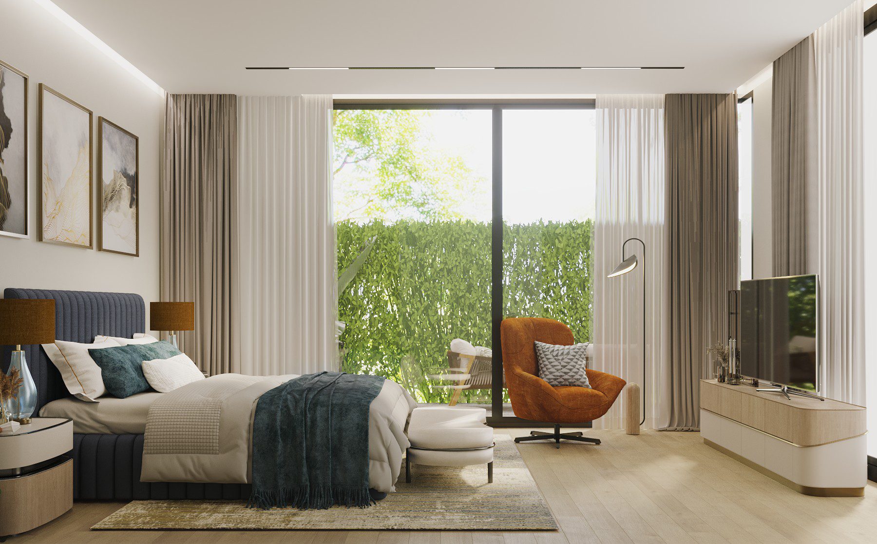 На вилле: одноэтажные виллы с 3мя и 4мя спальнями, личный бассейн. На каждой вилле предусмотрена парковка для 2х авто с зарядной станцией для электрического автомобиля. Также на виллах будут установлены энергосберегающие солнечные панели на крыше и система «умный дом».