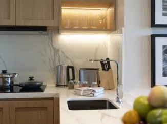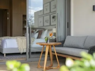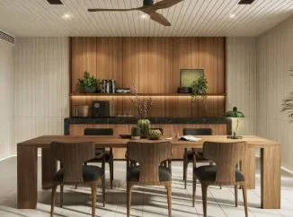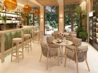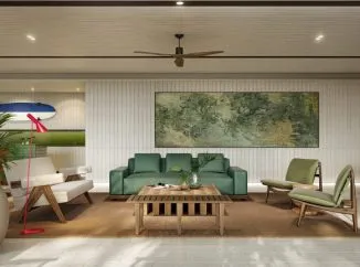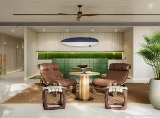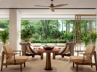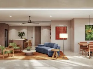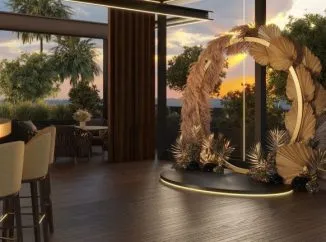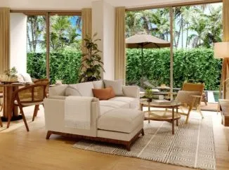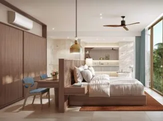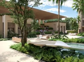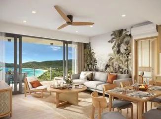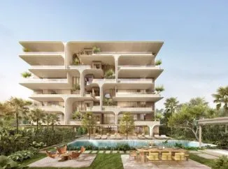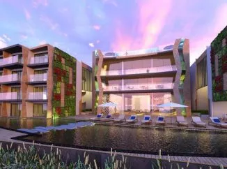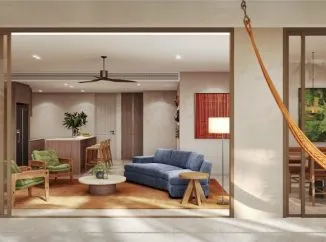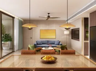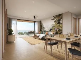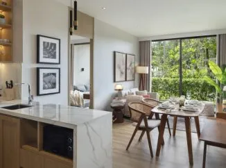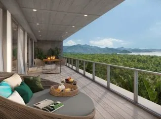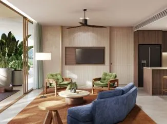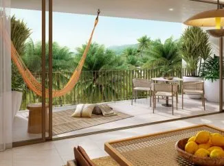 В апарментах: квартиры предлагают стильные современные резиденции с одной, двумя или тремя спальнями. Интерьеры оформлены в нейтральных природных тонах, создавая ощущение гармонии с природой как внутри, так и снаружи дома. Особенностью каждой квартиры является наличие складных рабочих зон, что позволяет жильцам комфортно совмещать работу и отдых. Все апартаменты имеют просторные планировки и большие окна, обеспечивающие естественное освещение и прекрасные виды на окружающие лагуны и леса.