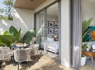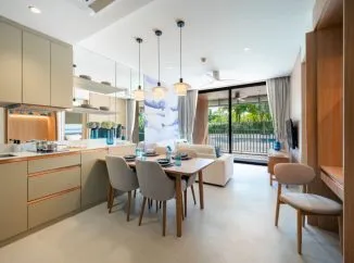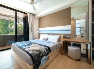 Особенность: главной особенностью является его уникальное расположение и доступ к обширной инфраструктуре Laguna Phuket. Комплекс окружен зелеными насаждениями и водоемами, создавая атмосферу спокойствия и уединения. Жильцы получают доступ к эксклюзивной инфраструктуре на крыше с панорамными бассейнами, зонами для барбекю и террасами для отдыха. Также они могут пользоваться всеми удобствами соседних курортов, включая спортивные комплексы и пляжные клубы.