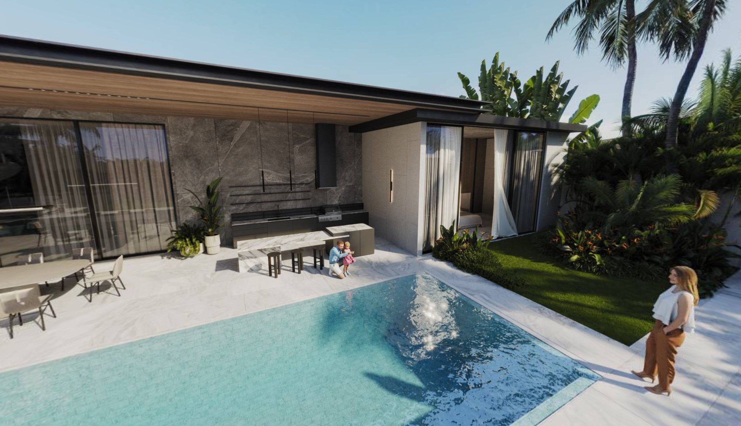Особенности: комплекс отличается продуманной инфраструктурой, энергоэффективными решениями (включая солнечные панели) и выгодным расположением вблизи пляжей Банг Тао и Лаян, а также ключевых объектов инфраструктуры острова.