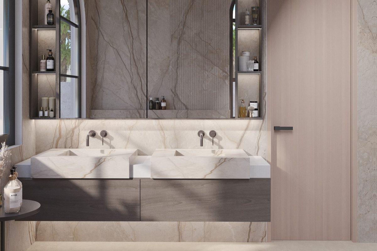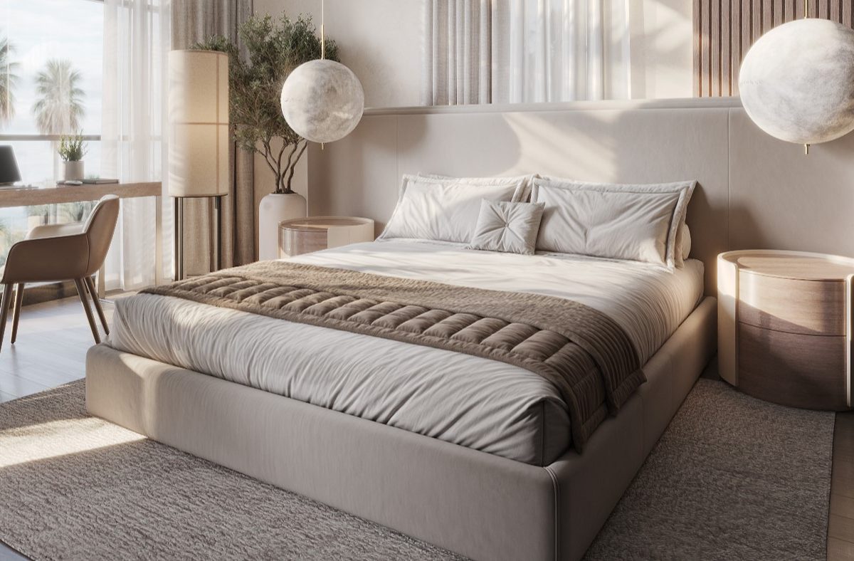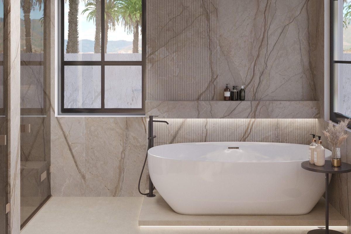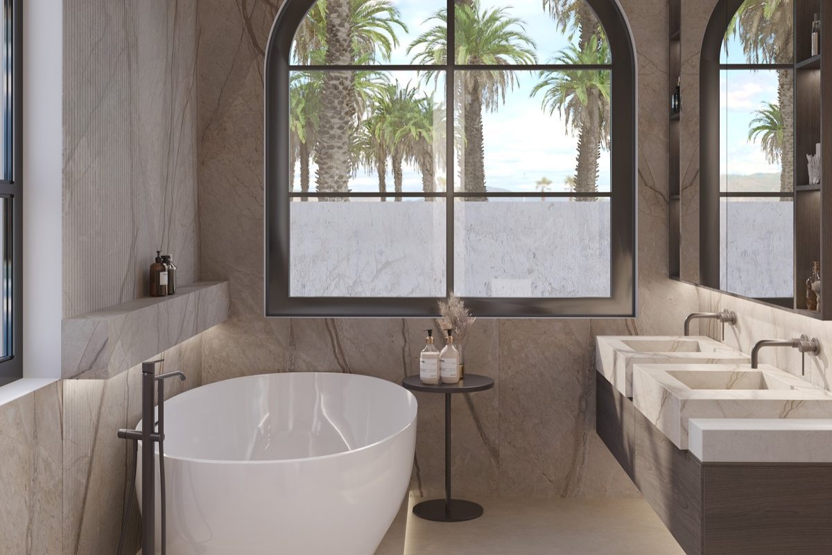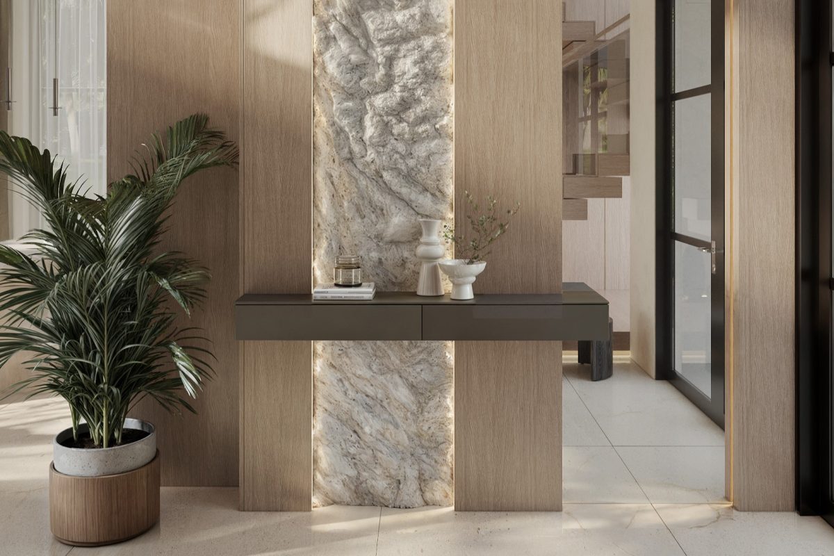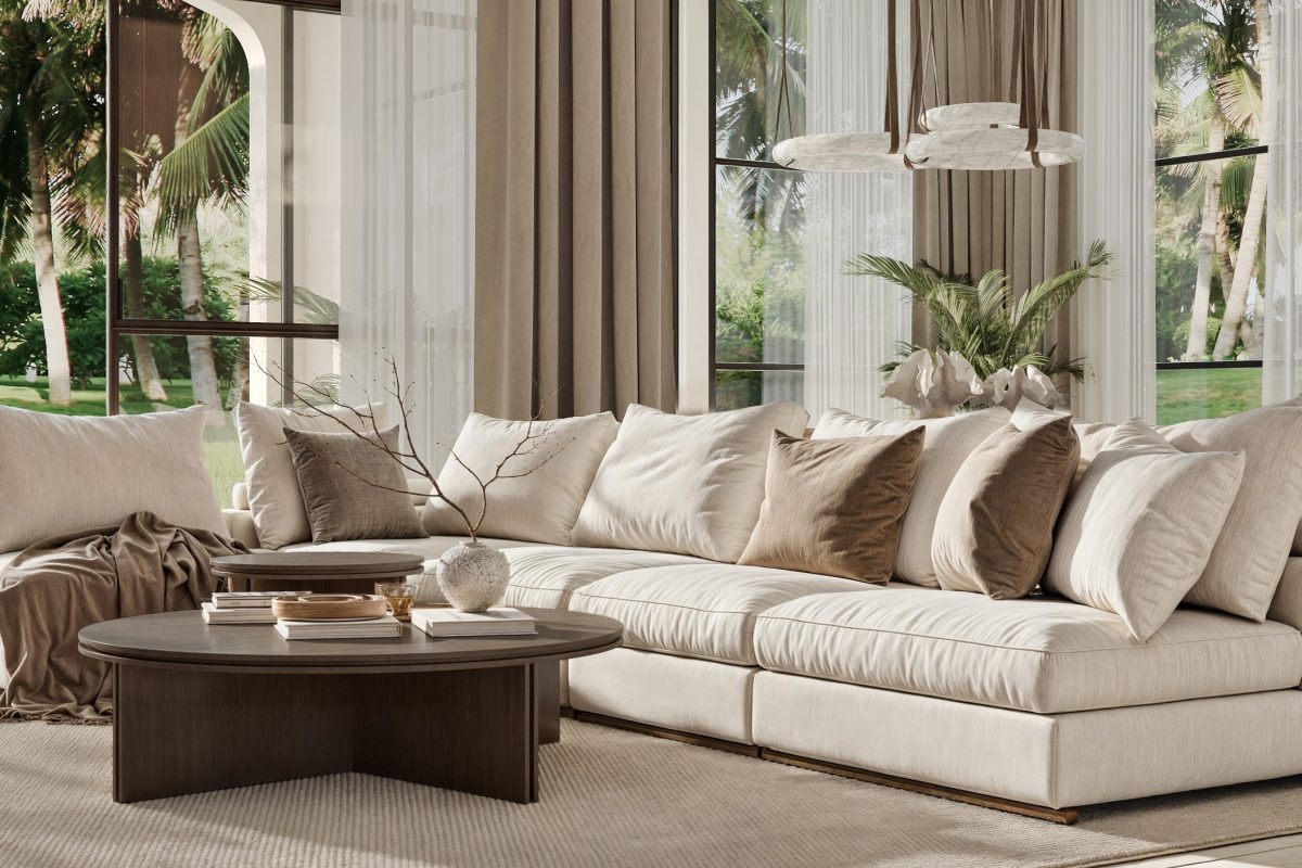 На вилле: дома выполнены в минималистичном стиле с натуральными материалами. Высокие потолки, большие окна и нейтральные тона создают простор и уют. Кухни оформлены мрамором, спальни имеют вместительные гардеробные, а ванные — современную сантехнику. Ландшафт включает бассейны, террасы и зеленые зоны. Доступны одно- и двухэтажные дома с 2–4 спальнями.