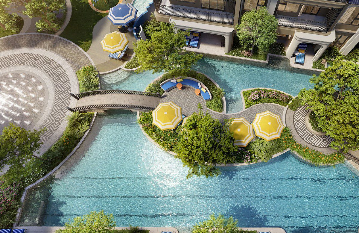 В комплексе: 4 корпуса по 8 этажей, всего 363 апартаментов. Доступны планировки с 1, 2 и спальнями, а также пентхаусы; площадь квартир варьируется от 32 до 128 кв.м. Площадь территорий общего пользования всего проекта — 5230 кв.м, из них площадь бассейнов — 770 кв.м и 1800 кв.м зеленой зоны. Территория общего пользования включает: зона для банкетов на газоне, детская площадка, открытая лаунж-зона, зона для домашних животных, основной бассейн, лап-бассейн (для плавания), вихревая зона, детский бассейн с игровым оборудованием, водопад с пещерой, джакузи (гидротерапия), открытая зона для ужинов с видом на небо, панорамная терраса с шезлонгами. Внутренние зоны: коворкинг и общая кухня, переговорная комната, зона автоматов (вендинг), прачечная, фитнес-зал, йога-зона, лаунж и игровая зона, сауна и парная.
