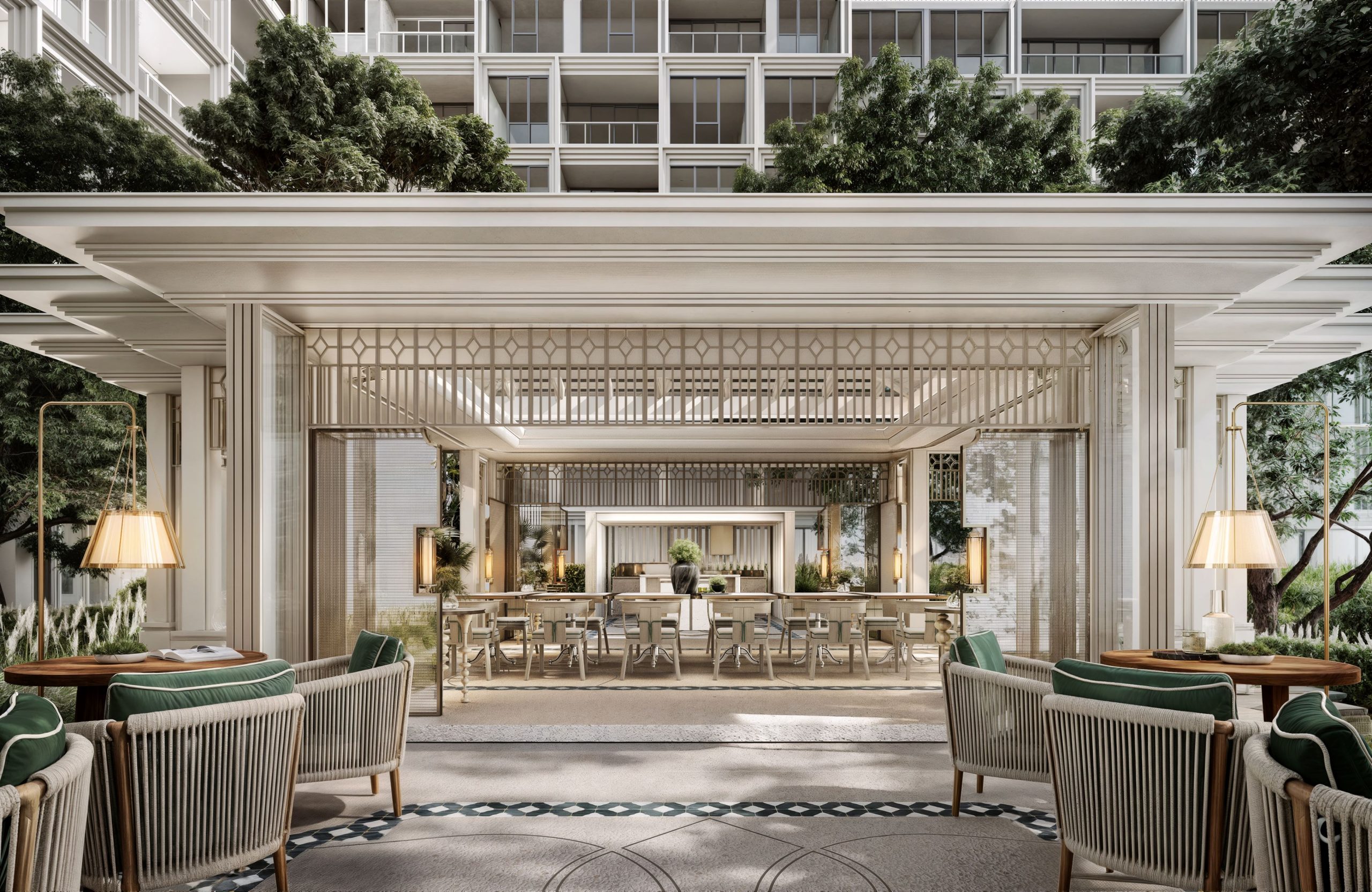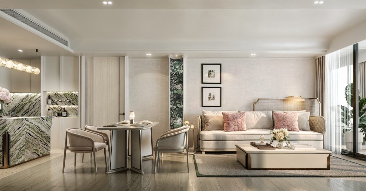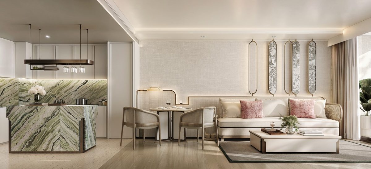 В апартаментах: просторные резиденции выполнены в элегантном современном стиле, с акцентом на свет, комфорт и эстетику бренда InterContinental. В отделке используются натуральное дерево, камень и мягкие текстуры, создающие ощущение уюта и статуса. Все планировки продуманы до мелочей, с просторными гостиными, панорамными окнами и частными террасами. В некоторых резиденциях предусмотрены собственные бассейны. Площади варьируются от 59 до 425 м² — от апартаментов с одной спальней до пентхаусов на пять спален.