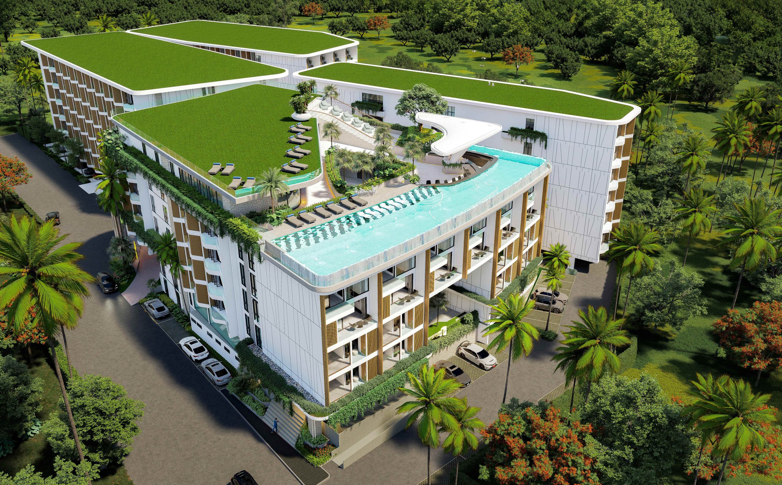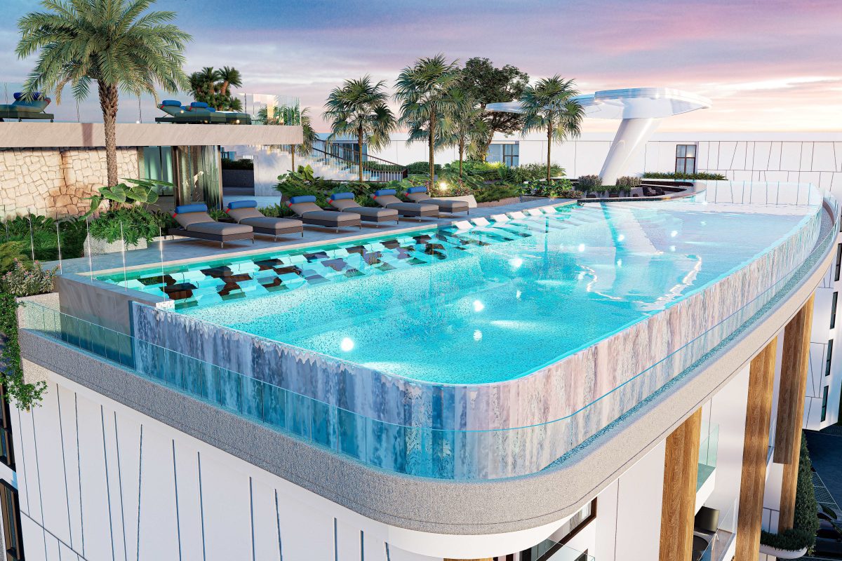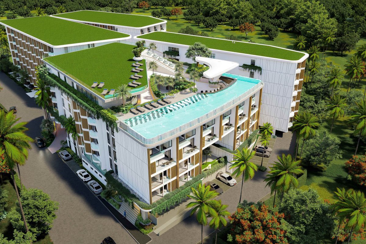 В комплексе: 4 здания, высотой семь этажей, 274 юнита. ресторан-бар на крыше, бассейн с панорамным видом, фитнес – центр, ресепшн, парковка, круглосуточная охрана.