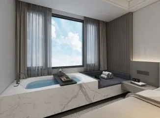 В комплексе: к вашим услугам многофункциональный бар, роскошный бассейн на крыше и просторная терраса, где можно чудесно отдохнуть как душой, так и телом. Эстетически безупречный дизайн представляет собой синтез первозданного комфорта и богатого культурного наследия. Широко использованный изысканный ля только усиливают ошеломляющее великолепие интерьера, сочетающего в себе высочайшие стандарты как классического, так и современного архитектурного стиля.