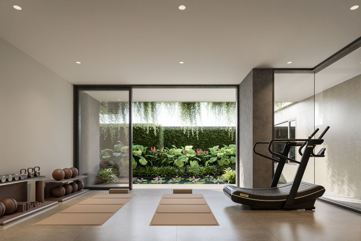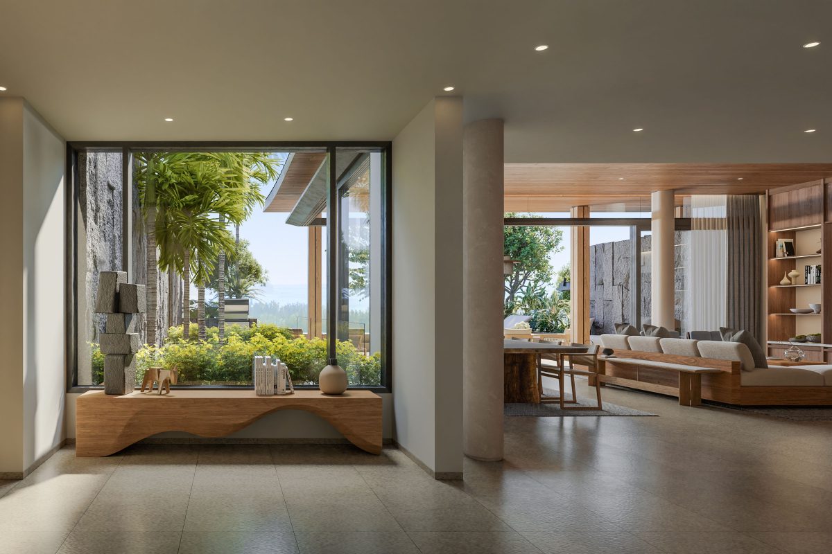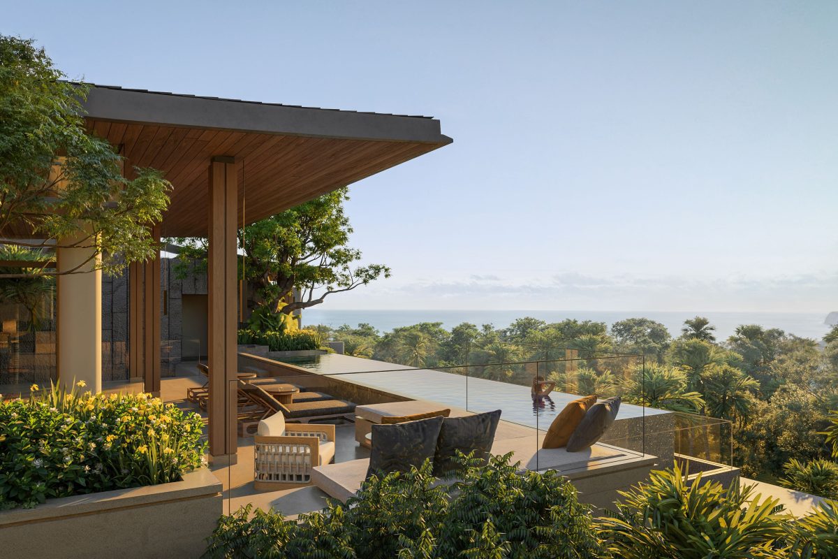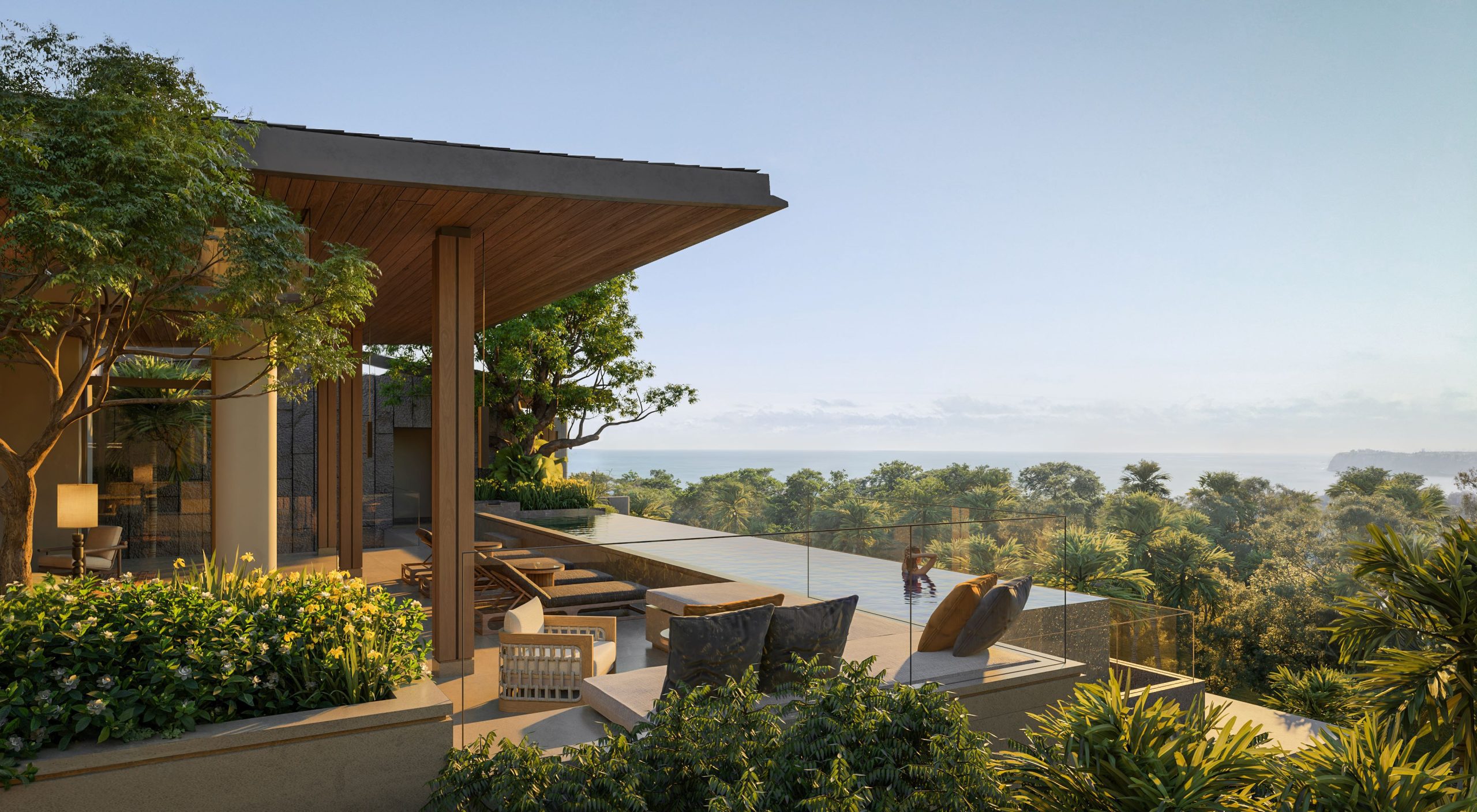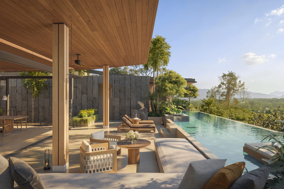 На вилле: просторные виллы с 4–5 спальнями расположены на участках площадью от 600 до 2000+ м². Продуманные планировки включают просторную гостиную с кухней и обеденной зоной, мастер-сьют с собственной террасой, внутренние дворики с зеленью, рабочие кабинеты, гардеробные, зоны отдыха, панорамные балконы, а также приватный инфинити-бассейн. Предусмотрены технические помещения, прачечная, кладовые, отдельные зоны для персонала и удобная парковка. Архитектура выполнена международной студией, сочетает минимализм, природные материалы и открытую планировку с интеграцией природы.