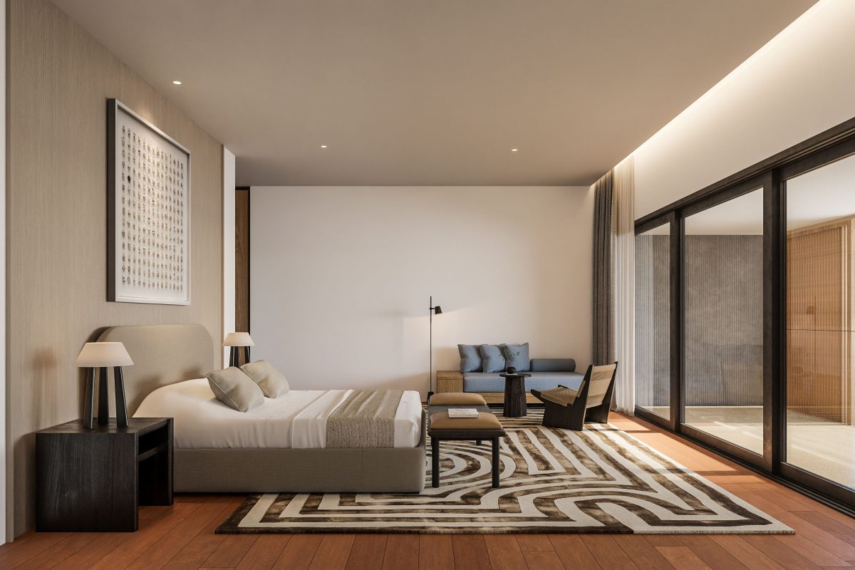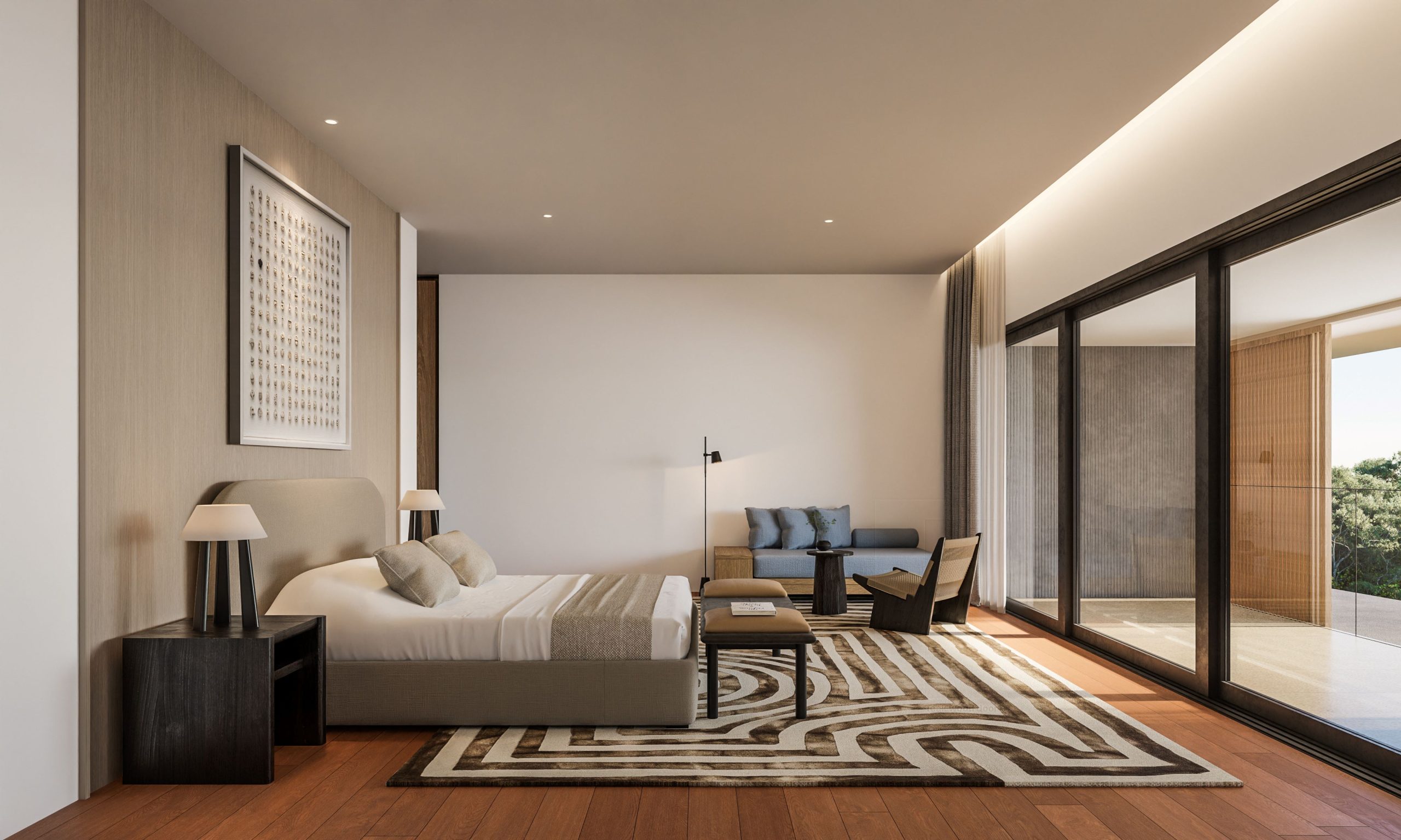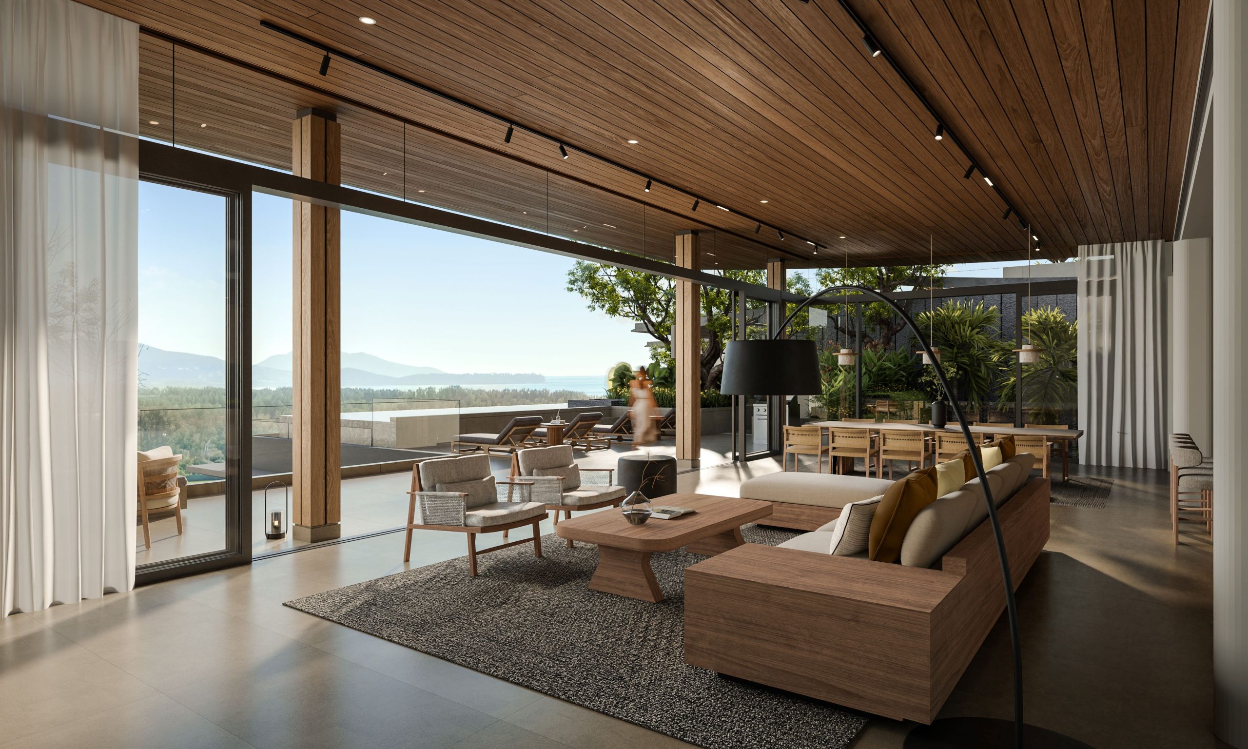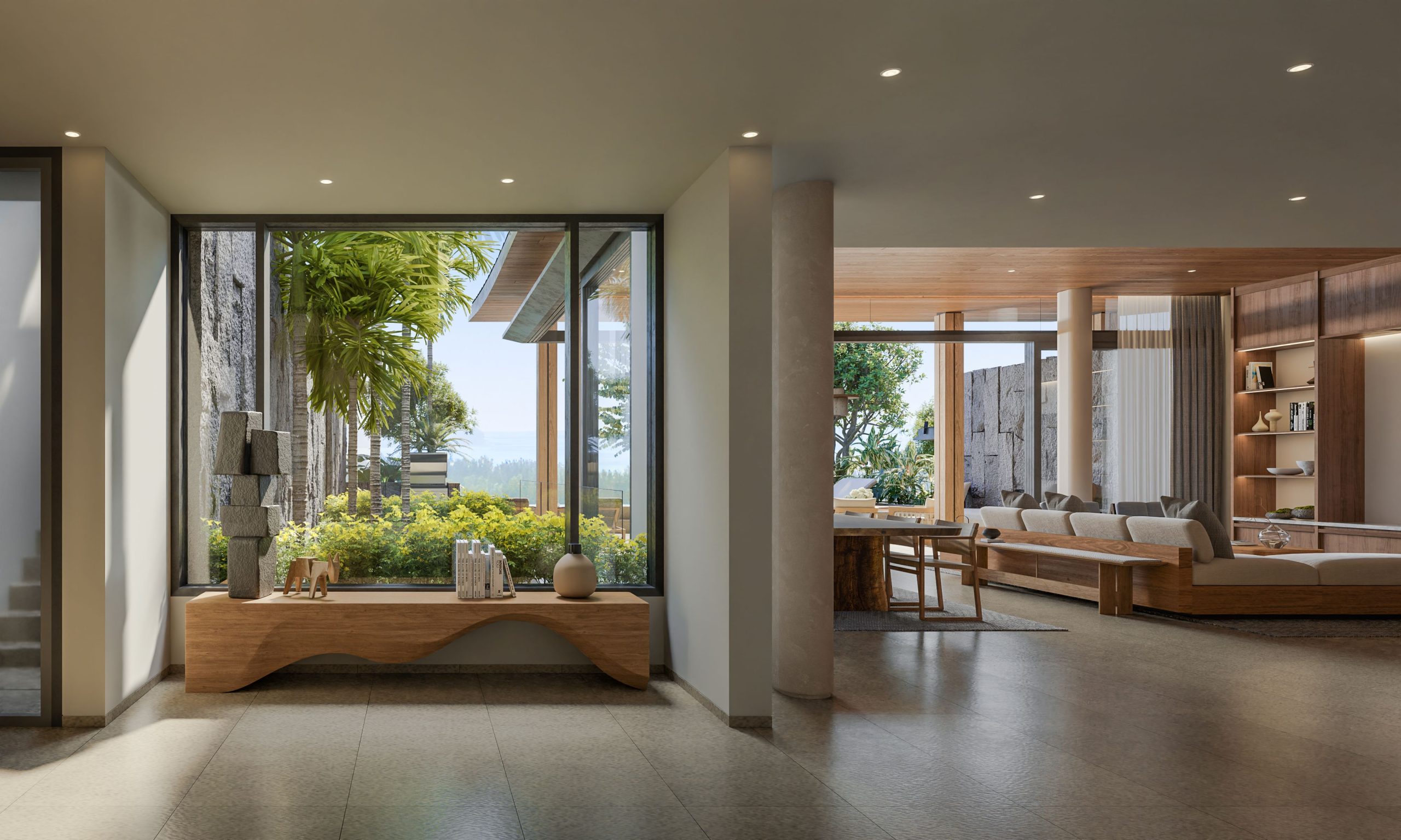 На вилле: просторные виллы с 4–5 спальнями расположены на участках площадью от 600 до 2000+ м². Продуманные планировки включают просторную гостиную с кухней и обеденной зоной, мастер-сьют с собственной террасой, внутренние дворики с зеленью, рабочие кабинеты, гардеробные, зоны отдыха, панорамные балконы, а также приватный инфинити-бассейн. Предусмотрены технические помещения, прачечная, кладовые, отдельные зоны для персонала и удобная парковка. Архитектура выполнена международной студией, сочетает минимализм, природные материалы и открытую планировку с интеграцией природы.