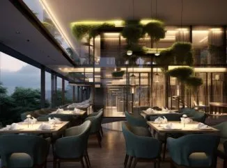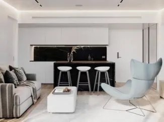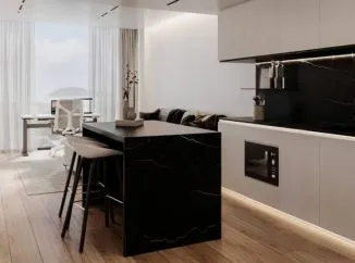 В апартаментах: Дизайн интерьеров вдохновлен необычными формами природы: это напоминание об острове в море, богатая цветовая гамма создает атмосферу энтузиазма и жизненной энергии,