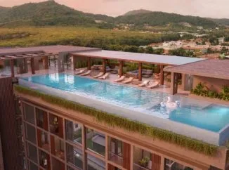 В комплексе: ландшафт центральной зоны буквально вращается вокруг бассейна, предназначенного для вашего полноценного отдыха. Он создает уникальные художественные пространства с зелеными островами по всей территории, павильонами для отдыха и местами с уникальной атмосферой и дизайном, который проявляется в деталях экстерьера. Этот комплекс пропитан страстью тропических островов. Огромная территорией для водных развлечений, собственная торговая улица, зона с лакшери виллами — все это сделает ваш отдых и проживание в этом комплексе незабываемым. В комплексе представлены 9 вариантов планировки квартир, общим количеством 529 юнитов с 1, 2, 3 спальнями. Павильоны, напоминающие ложа раков-отшельников, предоставляют уединенное пространство с видом на горы и море.