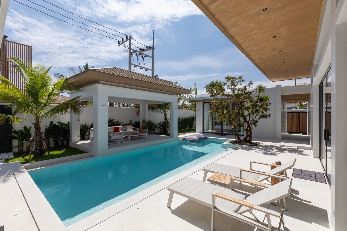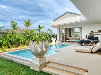 На вилле: одноэтажные виллы с бассейном, с 3мя и 4мя спальнями. Современный дизайн интерьера продуман до мелочей.