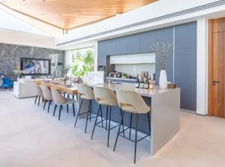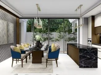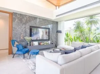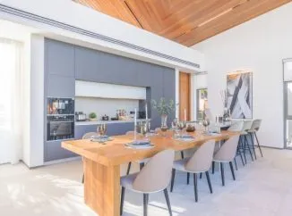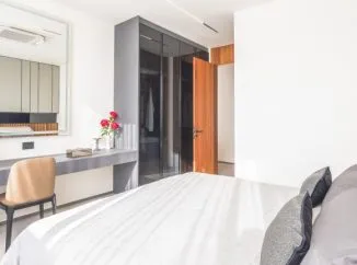 В стоимость включено: отделка с использованием высококачественных натуральных материалов, сантехника, встроенная кухня, встроенные шкафы, кондиционеры.
