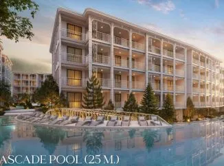В комплексе: уникальный пятизвездочный курортный комплекс! Общая площадь – 99 200 кв.м. 500-метровая цветочная аллея на входе, 6 бассейнов, 23 бутик-магазина, рестораны, тренажерный зал. К вашим услугам 450 апартаментов для отдыха!