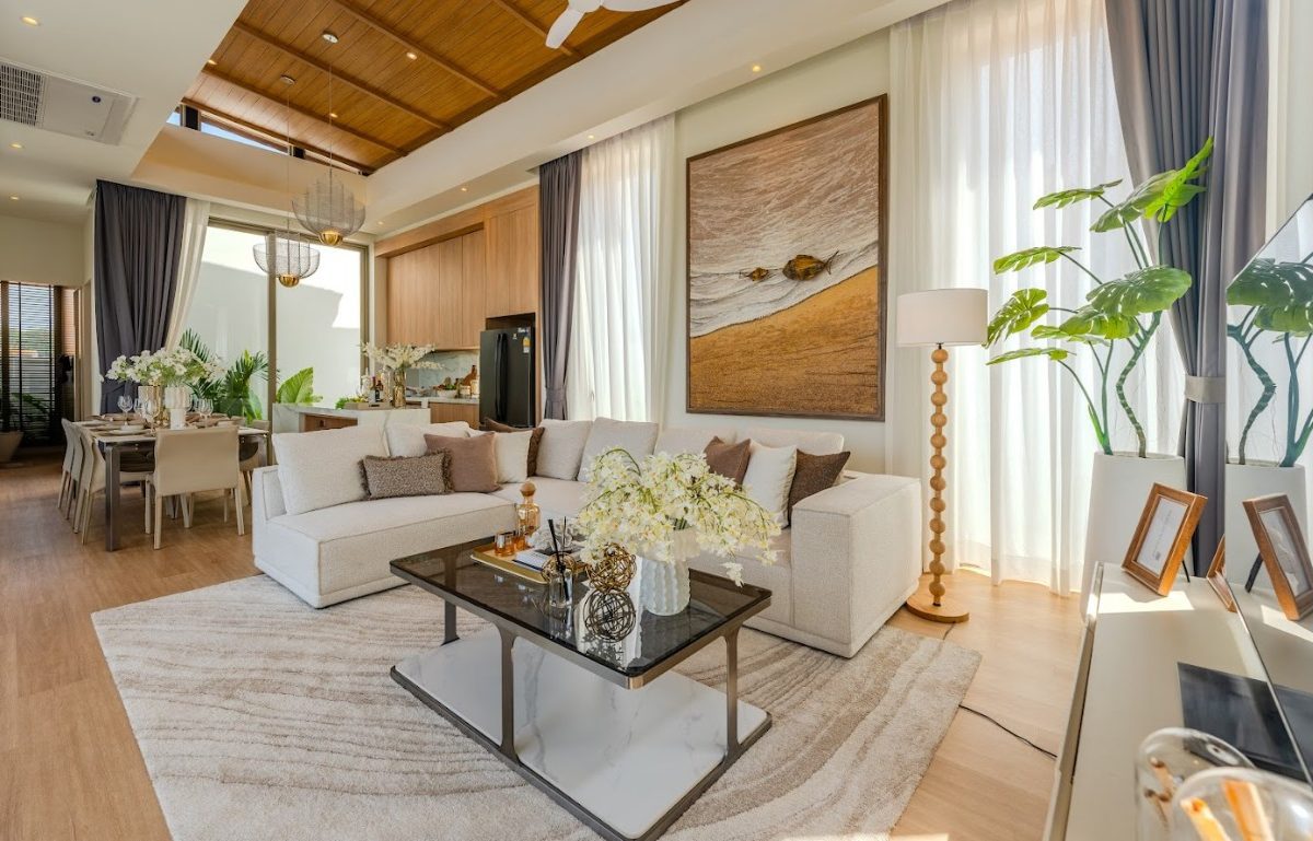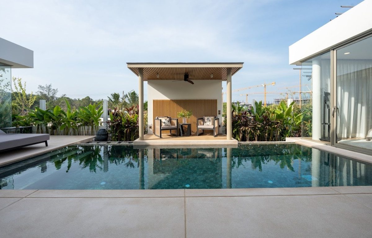 На вилле: каждая вилла выполнена в современном тропическом стиле с акцентом на комфорт и функциональность. Доступны варианты с 3 и 4 спальнями, 3–4 ванными комнатами, с застроенной площадью от 270 до 359 кв.м. и участками от 315 до 585 кв.м. Все дома оснащены частным бассейном, зелёным садом, просторной террасой и крытой парковкой. Интерьеры оформлены с учётом максимального естественного освещения: высокие потолки, панорамное остекление, открытая кухня, совмещённая с обеденной зоной и гостиной с выходом к бассейну.