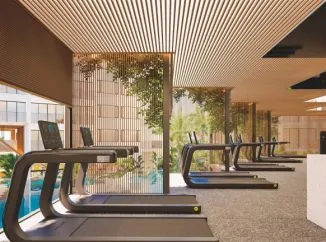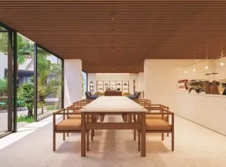 В апартаментах: архитектурное решение проекта сочетает в себе перанаканскую культуру и современные тенденции, создавая уникальное и функциональное пространство. Большие окна и высокие потолки позволяют максимально использовать естественный свет. Здесь вы найдете удобное пространство для работы и развлечений. Также для проживающих доступны общие рабочие зоны с разной рассадкой, от приватных кабин до конференц-залов. После работы вы можете расслабиться в комнате для отдыха, там же есть бильярд. Поддерживайте свою физическую форму в современном фитнес-центре и зоне для йоги на открытом воздухе.