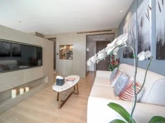 В апартаментах: резиденции с одной и двумя спальнями выполнены в современном стиле с элементами итальянского дизайна, создавая атмосферу уюта и комфорта. Высота потолков варьируется от 2,5 до 2,7 метров, в зависимости от этажа, что добавляет пространства и света в комнатах. Просторные балконы и террасы предлагают потрясающие виды на море и тропические сады, делая каждую квартиру идеальной для отдыха и проживания.