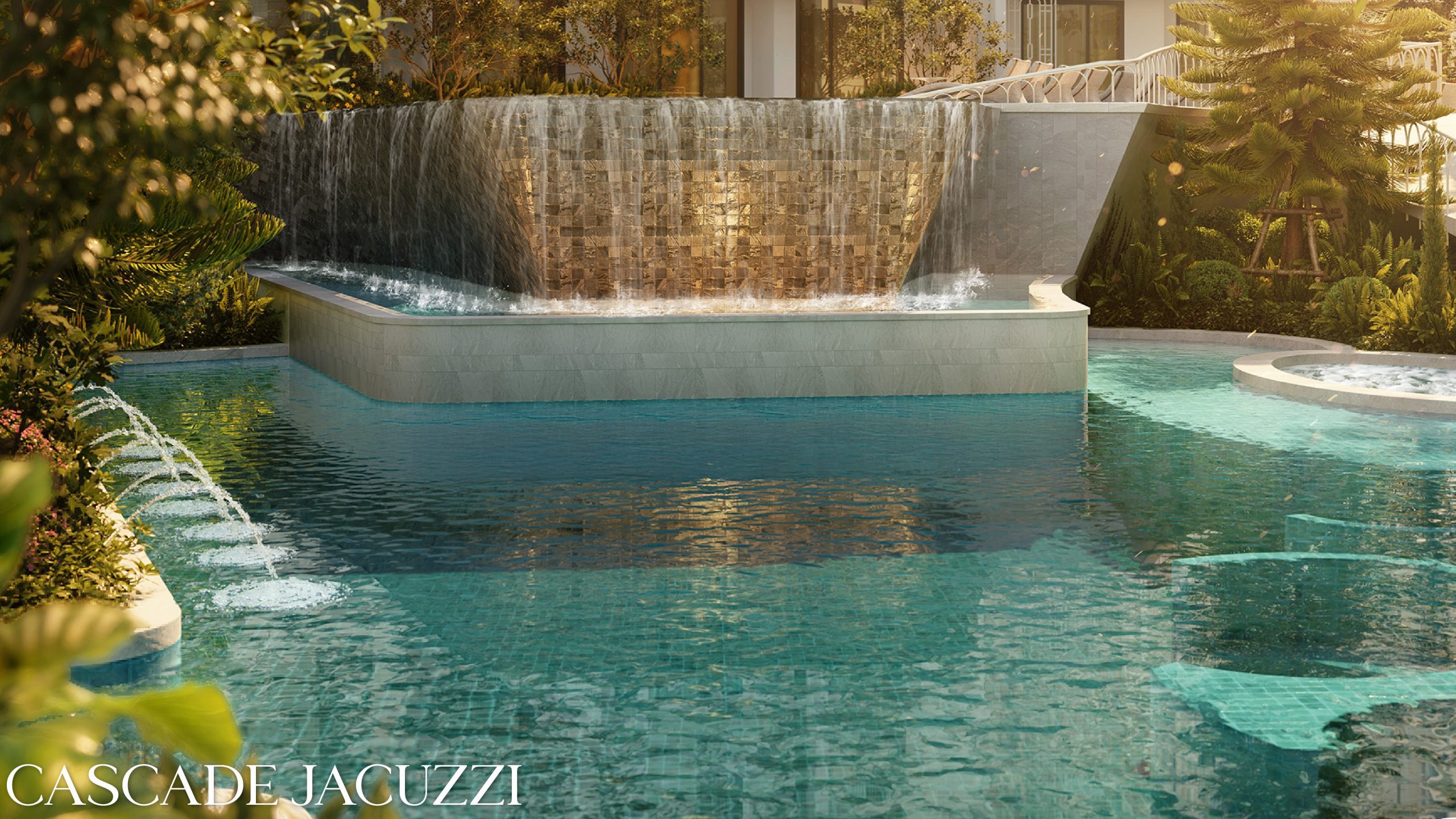 Инфраструктура самого комплекса включает бассейны (в т. ч. спортивный бассейн длиной 25 м и каскадное джакузи), фитнес‑центр и сауну, коворкинг, лаунж‑зоны и общественные пространства, детскую площадку и детский аквапарк, зоны для питомцев (в т. ч. бассейн для животных), тропу рефлексотерапии, зону для йоги, ивент‑зону, а также кафе и вендинговые автоматы. Предусмотрена подземная и наземная парковка. Проект представляет собой закрытое сообщество (gated community) с pet‑friendly‑политикой — разрешено проживание с домашними животными.