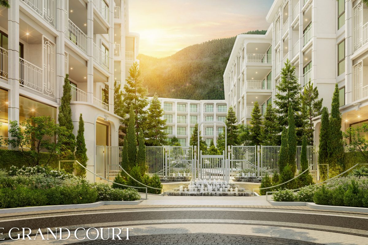 В апартаментах: отделка премиум‑класса, которая предусматривает использование качественных материалов, элегантный дизайн, панорамные окна, а также встроенную мебель и технику (холодильник, плита, микроволновка, кондиционер, сантехника).